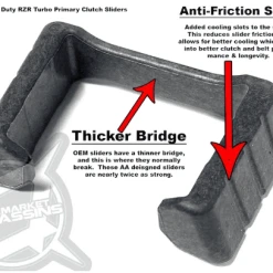 - This kit includes our complete heavy-duty AA primary clutch. This clutch is the same design found on the 2016-2020 RZR Turbo models with an encapsulated tower design. We found this clutch to hold power better, hold up better (no exploding), and slip the belt less. It simply meets the demands of these high horsepower vehicles, and is proven. This clutch also holds belt grip better than billet clutches, especially when clutching for higher RPM. This primary clutch is our own version made with higher grade tool steel for the post, assembled with AA HD sliders, to our AA specifications.