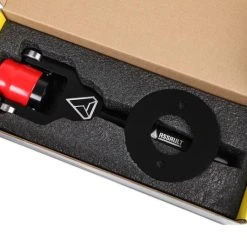 The Assault Industries F-22 belt replacement tool for Can-Am Maverick X3 is used to release the tension of the clutch so that the belt can be removed and reinstalled quickly. The tool is CNC machined from billet aluminum, hard anodized black, and finished with post-machined and laser engraved Assault Industries markings.