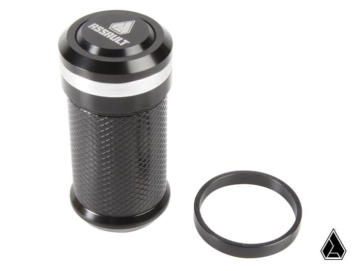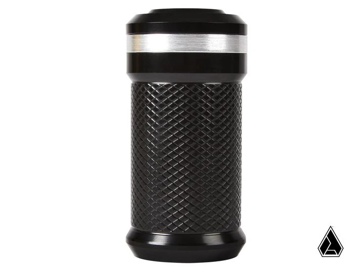 The Assault Industries M2HB billet shift knob is precision machined from a solid chunk of aerospace grade 6061 T6 billet aluminum. The knob features a diamond pattern knurled grip, with a brushed aluminum accent ring and Assault Industries logo cap insert. The hard anodized finish gives the shifter a stealthy tactical finish. The M2HB shift knob comes predrilled and threaded specifically for the Can-Am Maverick X3 and requires no inserts or adapters to install.