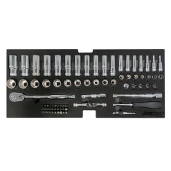 New to the BoxoUSA line of toolboxes is the 2-Drawer Hand Carry Tool Box with tools! This 2-Drawer Hand Carry comes loaded with a 113-Piece metric tool set; all professional grade craftsmanship with black handles and grey Boxo labeling are organized in a matte black EVA foam tool storage solution tray to keep your tools organized and looking neat. Designed as a grab-and-go hand-carry solution with all the essential tools you’ll need for many jobs at an affordable price.