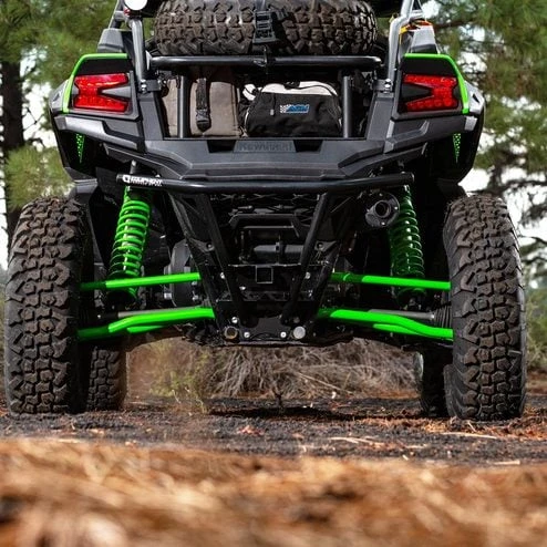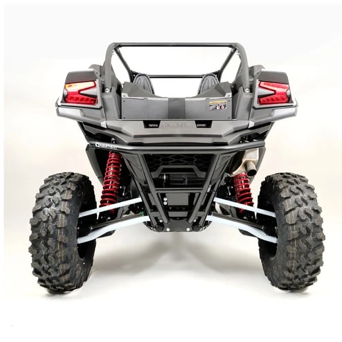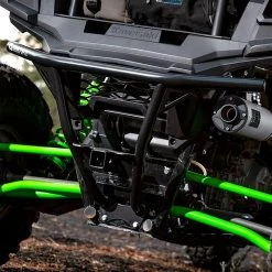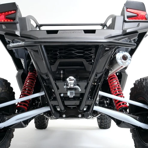 The HMF Defender Rear Bumper for the Kawasaki Teryx KRX 1000 is constructed from .095′ wall steel tubing and powder coated for the ultimate protection for the rear of the Teryx KRX 1000. The rear bumper easily mounts to the frame of the vehicle and provides the strength and protection to handle even the most demanding situations. The bumper features an optional 2″ hitch receiver that will not inhibit ground clearance or approach/departure angle and extends only 3.5″ past the rear fascia to provide easy access to the cargo bed and keep from adding excessive length to the vehicle.