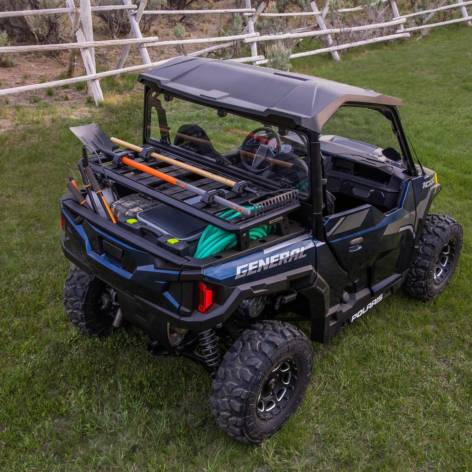 Bring everything you need wherever the trail takes you with this Rhino-Rack® Rear Bed Rack. This industry-first partnership delivers unmatched load carrying versatility for your side-by-side. Rhino-Rack® is for the seasoned adventurer, farmer, rancher, or hunter who wants to carry their gear securely and efficiently. No more tools bouncing around in your cab or bed because this rack can be equipped with a wide variety of versatile attachments that protect and secure your load no matter what the terrain brings. This rack is a necessity if you use your vehicle for work and play: with easy-install attachments, you can swap from workday to weekend in minutes. Install quickly with included Lock and Ride hardware. Rhino-Rack® is a registered trademark of Rhino Rack Australia Pty Limited.