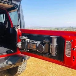 This 2.0 version Mount includes 2 anti rattle straps threaded through laser cut holes to keep the jack tight and secure reducing movement and noise. Straps also tighten the jack handles to the mount which sit in the bed of the mount.