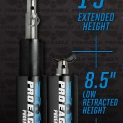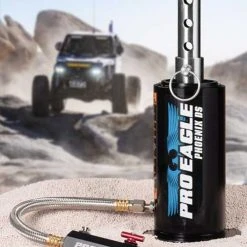The Pro Eagle Phoenix DS Air Jack sports a lower 8.5 inch retracted height allowing it to be utilized in more varied situations. The telescopic design provides 17″ of lift height. The lower starting height makes the DS easier to slide under a vehicle with a flat tire. It also increases the amount of lift points on the vehicle, especially in uneven terrain. Most commonly a flat tire won’t happen on perfectly flat and level ground, and most jacks can’t accommodate this situation, but the DS was made for the rugged, uneven terrain.