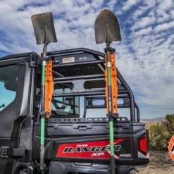 The “It Fits™” Universal Tool Mount from RBO is the perfect way to secure tools and equipment to your Vehicle. While it was primarily designed to bolt directly to any of our UTV Cargo Racks with the “It Fits™” Mounting Plate. You could bolt this mount to any flat surface you can think of. When it comes to versatility, this is the perfect mount for your Polaris, Honda, Can-Am, John Deere, Textron, Yamaha, Cub Cadet, or Mahindra Side x Side. You can install our “It Fits™” Universal Tool Mount in a vertical or horizontal position, you can use the mount on its own, or with another to create multiple tool holding options. The uses of this bracket are only limited to your own imagination. Each of our “It Fits™” Universal Tool Mounts are made from steel and then powder coated in a Black Finish (only black powder coat available). The Mount also includes (2) Quick Fist™ Adjustable Tool Holders that hold objects from 1-1/4” to 2-1/4” in diameter. We also include all mounting hardware along with (2) Custom RBO Quick Fist® Spacers. With the Custom RBO Spacers, you have the option to mount the Quick Fist™ directly to the base mount or use the spacer to offset the Quick Fist™ giving you the perfect offset to hold just about anything. With the RBO “It Fits™” Universal Tool Holder you can easily mount and hold a Shovel, Ax, Hammer, Rake, Fishing Pole, or just about anything you can think of to your Polaris RZR, Polaris Ranger, Can-Am Sport, Can-Am Maverick, Honda Pioneer, Textron Prowler, Textron Wildcat, Cub Cadet Challenger, Bob Cat or Kubota Utility Vehicle.
