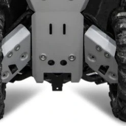 With a high folded front edge that protects your A-Arms from impact and your CV Boots from sticks hitting and tearing and letting dirt in there to wreck the joints. We also have drain holes on the underside to let dirt, grass seed, and sand that has built up to fall out or be washed out. Our A-Arm Guards utilize both factory mounting points and steel brackets to give maximum strength when mounting.