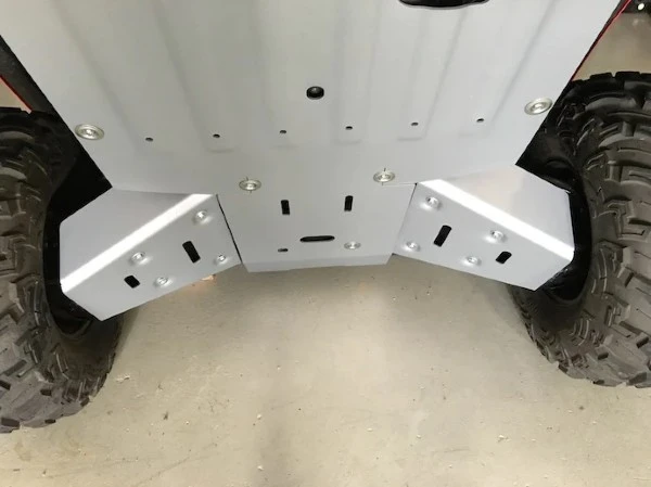 Our A-Arm Guards utilize both factory mounting points and steel brackets to give maximum strength when mounting. We also use a stamping procedure to allow extra strength for the A-Arm Guard and for our high-strength bolts to be recessed to allow a flat surface for sliding over any obstacle you might come across on the trail.