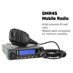 Ready to talk to other vehicles in your group? Simply press the included PTT (push-to-talk) on the steering wheel or grab-bar to transmit. Again, the music dims and you’re ready to talk through our Powerful 45-watt GMR45 mobile GMRS band radio.