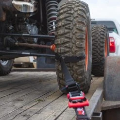 2 – UTV Through the Wheel Tie-Downs – Run though the wheel, through the D-Ring, and then secure to the trailer.