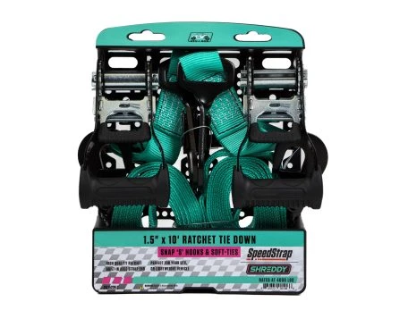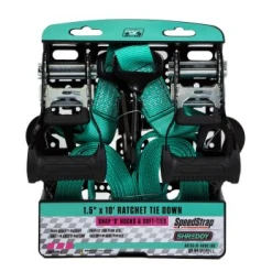 Speedstrap X Shreddy 1.5″ X 10′ Ratchet Tie Down W/ Soft-Tie (2 Pack) – Teal