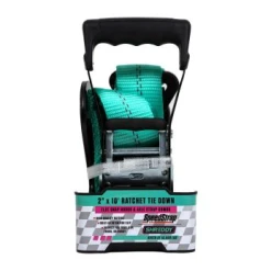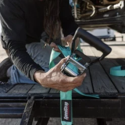 Speedstrap X Shreddy 2″ X 10′ Ratchet Tie Down W/ Twisted Snap Hooks & Axle Strap – Teal