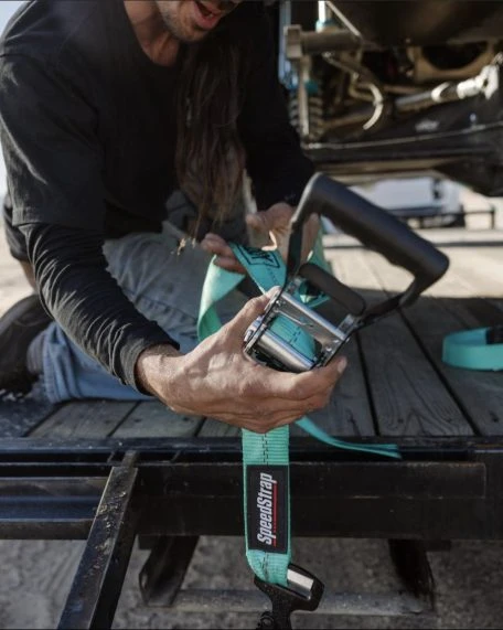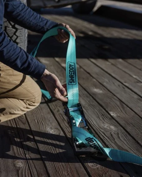 Grab a set of these SpeedStrap / Shreddy Lyfe collab tie-downs! These special edition straps feature custom teal webbing, with Shreddy/SpeedStrap logos down the length. This heavy-duty tie-down is great for securing Trucks, Jeeps, and Buggies. The high-quality ratchet mechanism features a black wide handle molded grip and cushioned release handle. Large flat snap hooks on either end keep the strap secure, and won’t come undone. The tie-down features a built-in Axle-Wrap with a protective sleeve to prevent damage to your vehicle. 10,000 lb maximum rated capacity and a 3,333 lb safe working load. Available with Teal Webbing. Sold Individually.